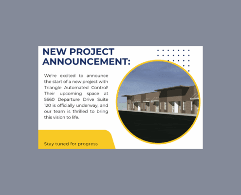 We’re excited to announce the start of a new project with Triangle Automated Control! Their upcoming space at 5660 Departure Drive Suite 120 is officially underway, and our team is thrilled to bring this vision to life.
